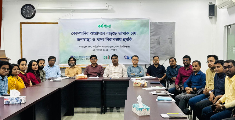 বুধবার (৫ নভেম্বর) ঢাকা বিশ্ববিদ্যালয়ের অর্থনৈতিক গবেষণা ব্যুরো (বিইআর) কনফারেন্স রুমে কোম্পানির আগ্রাসনে বাড়ছে তামাক চাষ, জনস্বাস্থ্য ও খাদ্য নিরাপত্তায় হুমকি শীর্ষক কর্মশালায় এসব তথ্য উঠে আসে। কর্মশালার আয়োজন করে ঢাবির অর্থনৈতিক গবেষণা ব্যুরো, বাংলাদেশ কৃষি সাংবাদিক ফোরাম (বিএজেএফ) ও বাংলাদেশ নেটওয়ার্ক ফর টোব্যাকো ট্যাক্স পলিসি (বিএনটিটিপি)। অনুষ্ঠানে স্বাগত বক্তব্য রাখেন বিএজেএফ এর সাধারণ সম্পাদক আবু খালিদ ও মূল প্রবন্ধ উপস্থাপন করেন বিএনটিটিপির টেকনিক্যাল কমিটির সদস্য ও বিএজেএফের গবেষনা সম্পাদক সুশান্ত সিনহা।