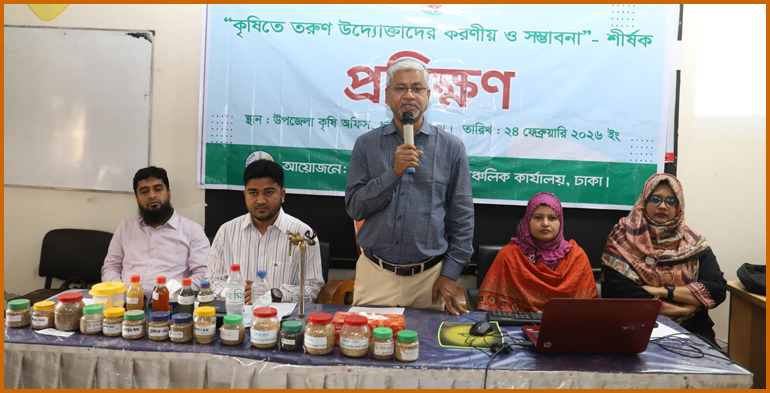 এগ্রিলাইফ২৪ ডটকম: ২৪/০২/২০২৬ মঙ্গলবার কৃষি তথ্য সার্ভিস,আঞ্চলিক কার্যালয় ,ঢাকা এর উদ্যোগে কৃষিতে তরুণ উদ্যোক্তাদের করনীয় ও সম্ভাবনা শীর্ষক প্রশিক্ষণ অনুষ্ঠিত হয়েছে। প্রশিক্ষণ উদ্বোধন করেন কৃষি তথ্য সার্ভিসের পরিচালক মোঃ মসীহুর রহমান। তিনি তার বক্তব্যে বলেন বর্তমান সময়ে কৃষি খাত বহুমাত্রিক সম্ভাবনার দ্বার উন্মোচন করেছে। ফসল উৎপাদনের পাশাপাশি কৃষি পণ্য প্রক্রিয়াজাতকরণ, সংরক্ষণ ও বাজারজাতকরণে দক্ষতা অর্জনের মাধ্যমে নতুন নতুন উদ্যোক্তা সৃষ্টি হচ্ছে। তথ্য প্রযুক্তির ব্যবহার , জলবায়ু সহনশীল চাষাবাদ এবং নিরাপদ খাদ্য উৎপাদনের প্রতি গুরুত্বারোপ করে তিনি তরুণদের উদ্ভাবণী উদ্যোগ গ্রহনের আহবান জানান।