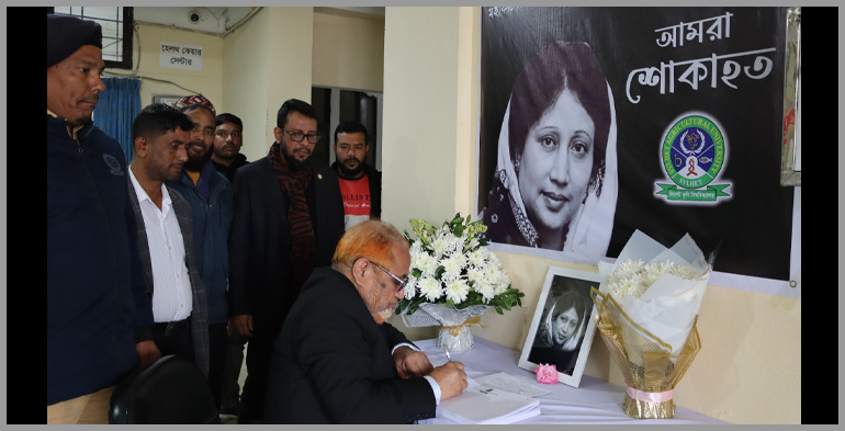 এ সময় তিনি মরহুমার বিদেহী আত্মার মাগফেরাত কামনা করেন ও তাঁর শোকসন্তপ্ত পরিবারের প্রতি গভীর সমবেদনা জানান। তিনি উল্লেখ করেন, দীর্ঘ আন্দোলন-সংগ্রামের পাশাপাশি বেগম খালেদা জিয়া দেশের শিক্ষাঙ্গনে অপরিসীম অবদান রেখেছেন। বিশেষ করে নারী শিক্ষার অগ্রগতিতে তিনি অনন্য উদাহরণ সৃষ্টি করেছেন। বিশ্ববিদ্যালয় প্রশাসনের উদ্যোগে খোলা শোক বই প্রশাসন ভবনের নিচতলায় রাখা হয়েছে।