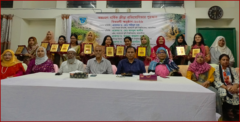 বাকৃবি প্রতিনিধিঃবাংলাদেশ কৃষি বিশ্ববিদ্যালয়ের (বাকৃবি) তাপসী রাবেয়া হলে অন্তঃহল বার্ষিক ক্রীড়া প্রতিযোগিতার পুরস্কার বিতরনী অনুষ্ঠিত হয়েছে। বৃহস্পতিবার (২এপ্রিল) সন্ধ্যা সাড়ে ৭টায় হলের সম্মেলন কক্ষে এ আয়োজন করা হয়।