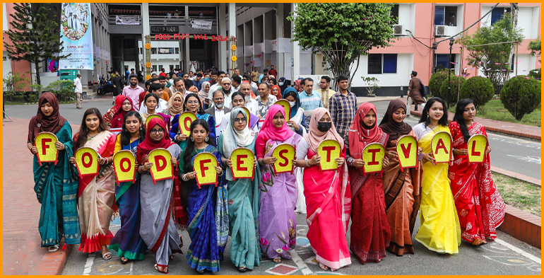 শোভাযাত্রা শেষে ফুড ফেস্টিভ্যালের উদ্বোধন করেন উপাচার্য প্রফেসর ড. মোহাম্মদ লুৎফুর রহমান। ফুড ফেস্টিভ্যালে সর্বমোট ১২টি স্টল ছিল। স্টলগুলোতে স্থান পায় বিশ্ববিদ্যালয়ের শিক্ষার্থীদের তৈরি বিভিন্ন ধরনের মুখরোচক পিঠা ও হরেক রকম উপাদেয় খাবার। সন্ধ্যায় অনুষ্ঠিত হয় মনোজ্ঞ সাংস্কৃতিক অনুষ্ঠান।