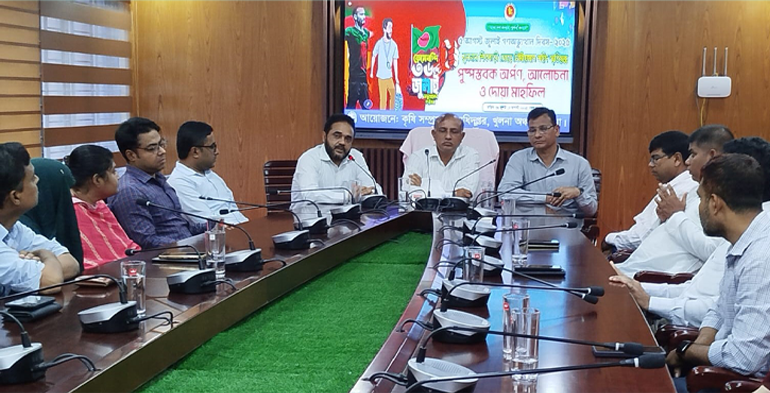 এগ্রিলাইফ২৪ ডটকম:ফ্যাসিবাদী সরকার পতনের এক বছর পূর্তিতে কৃষি সম্প্রসারণ অধিদপ্তর খুলনা অঞ্চলের উদ্যোগে ৫ আগস্ট জুলাই গণঅভ্যুত্থান দিবস’-উপলক্ষ্যে আলোচনা ও দোয়ার আয়োজন করা হয়। দৌলতপুরস্থ কৃষি সম্প্রসারণ অধিদপ্তর খুলনা অঞ্চলের সভা কক্ষে অতিরিক্ত পরিচালক কৃষিবিদ মোঃ রফিকুল ইসলামের সভাপতিত্বে ও উপপরিচালক কৃষিবিদ মোঃ নজরুল ইসলামের সঞ্চালনায় আলোচনা সভায় প্রধান অতিথি হিসেবে উপস্থিত ছিলেন কৃষি সম্প্রসারণ অধিদপ্তরের সাবেক কর্মকর্তা জিয়াউর রহমান ফাউন্ডেশন-এর খুলনা বিভাগীয় মনিটর কৃষিবিদ ড. এস এম ফেরদৌস।