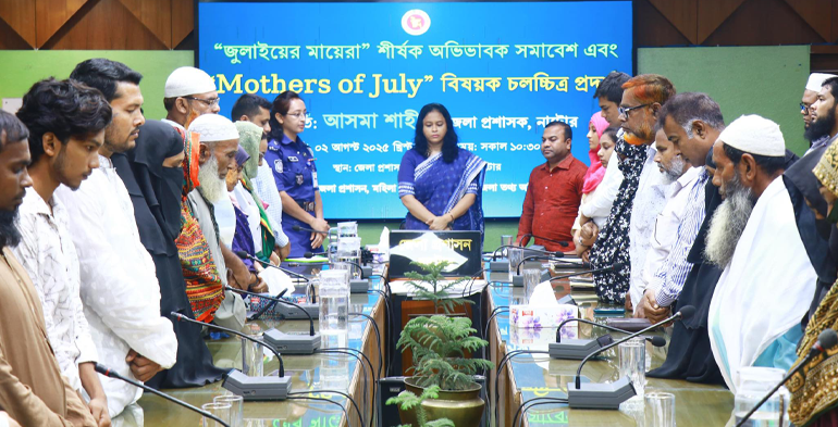 মোছাঃ সুমনা আক্তারী: গত ২ আগস্ট ২০২৫ তারিখে জেলা প্রসাশন,মহিলা বিষয়ক অধিদপ্তর ও জেলা তথ্য অফিস,নাটোর এর আয়োজনে “জুলাইয়ের মায়েরা’ শীর্ষক অভিভাবক সমাবেশ এবং Mothers of July” চলচ্চিত্র প্রদর্শন জেলা প্রসাশকের সম্মেলন কক্ষে অনুষ্ঠিত হয়েছে। শনিবার সকাল সাড়ে দশটায় জেলা প্রশাসকের সম্মেলন কক্ষে অনুষ্ঠিত সমাবেশে সভাপতিত্ব করেন জেলা প্রশাসক আসমা শাহীন।