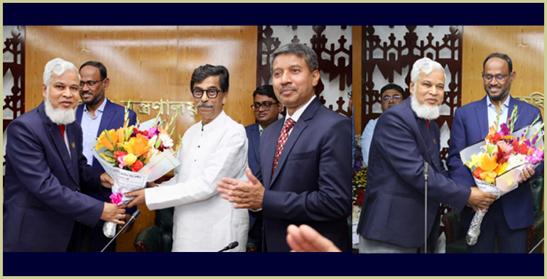 এগ্রিলাইফ ডেস্ক: কৃষি মন্ত্রী মোহাম্মদ আমিন উর রশীদ এবং কৃষি প্রতিমন্ত্রী সুলতান সালাউদ্দিন টুকু-কে ফুলেল শুভেচ্ছা জানিয়েছেন ড. মুহাম্মদ আতাউর রহমান, মহাপরিচালক, বাংলাদেশ কৃষি গবেষণা ইনস্টিটিউট (বারি)। আজ ২২ ফেব্রুয়ারি রাজধানীর সচিবালয়ে এ সৌজন্য সাক্ষাৎ ও শুভেচ্ছা বিনিময় অনুষ্ঠিত হয়।