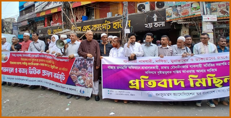 সায়মন ইসলামঃ পবিত্র মাহে রমজান উপলক্ষে নিত্যপ্রয়োজনীয় ভোগ্যপণ্যের দাম সহনীয় রাখার দাবিতে এবং ঢাকার মৌলভীবাজারে ভোক্তা অধিদপ্তরের বাজার তদারকিতে ব্যবসায়ীদের বাধাদানের প্রতিবাদে চট্টগ্রামে প্রতিবাদ মিছিল ও স্থানীয় সংসদ সদস্য আবু সুফিয়ানের নেতৃত্বে বাজার তদারকি কর্মসূচি অনুষ্ঠিত হয়।