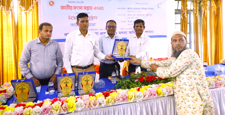 মোঃ গোলাম আরিফ: “অভয়াশ্রম গড়ে তুলি, দেশি মাছে দেশ ভরি” এই প্রতিপাদ্যকে সামনে রেখে ১৮ আগস্ট ২০২৫ পাবনায় সপ্তাহব্যাপী জাতীয় মৎস্য সপ্তাহ-২০২৫ এর শুভ উদ্বোধন অনুষ্ঠিত হয়। জেলা প্রশাসন ও মৎস্য অধিদপ্তর,পাবনা’র আয়োজনে ১৮ আগস্ট থেকে ২৪ আগস্ট সপ্তাহব্যাপী এ কার্যক্রমের শুভ উদ্বোধন করেন মোহাম্মদ মফিজুল ইসলাম, জেলা প্রশাসক, পাবনা।