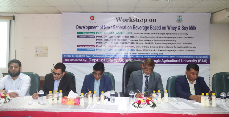 এগ্রিলাইফ২৪ ডটকম: শিক্ষা মন্ত্রণালয়ের অর্থায়নে হোয়ে ওয়াটার (ছানার পানি) ও সয়া দুধের সমন্বয়ে নতুন প্রজন্মের স্বাস্থ্যসম্মত পানীয় উদ্ভাবন বিষয়ে গবেষণা উপস্থাপন করা হয়েছে শেরেবাংলা কৃষি বিশ্ববিদ্যালয়ে। এ উপলক্ষে আজ রোববার বিশ্ববিদ্যালয়ের প্রশাসনিক ভবনের কনফারেন্স কক্ষে “ÒDevelopment of Next Generation Beverage Based on Whey Water and Soy Milk” শীর্ষক কর্মশালার আয়োজন করা হয়।