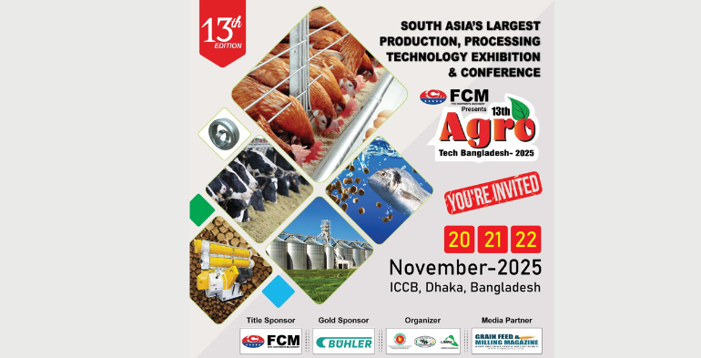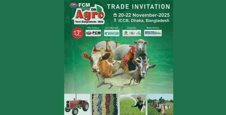 Agrilife24.com:The 13th Agro Tech Bangladesh 2025 exhibition and conference South Asia’s largest production and processing technology event is scheduled to take place from 20–22 November 2025 at the International Convention City Bashundhara (ICCB) in Dhaka organized by LIMRA Trade Fairs and Exhibitions Pvt. Ltd. The event is proudly supported by FCM as the Title Sponsor, Bühler as the Gold Sponsor, and Grain Feed & Milling Magazine as the official Media Partner.