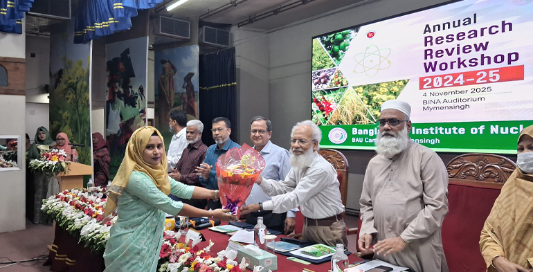 এছাড়াও পাট ও পেয়াজ বীজের বীজবাহিত রোগ দমনে গামা রেডিয়েশন প্রক্রিয়া এবং পাট ও কলার পাতা থেকে আঁশ বের করার জন্য বিনা পাইলট প্ল্যান্ট ফাইবার এক্সট্রাকশন মেশিনের উদ্ভাবনে চলা গবেষণার কথা জানানো হয়।
