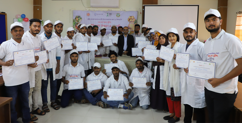 মো.জুলফিকার আলী:সাসটেইনেবল এগ্রিকালচার ফাউন্ডেশন বাংলাদেশ (এসএএফ বাংলাদেশ) এর সহযোগিতায় “প্রোগ্রাম অন এগ্রিকালচারাল এন্ড রুরাল ট্রান্সফরমেশন ফর নিউট্রিশন এন্টারপ্রেনরশিপ এন্ড রেসিলিয়েন্স ইন বাংলাদেশ” (পার্টনার ডিএএম-অংগ), কৃষি বিপণন অধিদপ্তর এর বাস্তবায়নে কৃষি ব্যবস্যায় তরুণ ও নারী উদ্যোগক্তাদের জন্য (৪-১৪) ডিসেম্বর/২০২৫) পর্যন্ত ১১ দিনব্যাপী অন-দ্যা জব ট্রেনিং এর সমাপনী এনজিও ফোরাম ট্রেনিং সেন্টার, শাহাজালাল উপশহর, সিলেট এর ট্রেনিং কক্ষে ১৪ ডিসেম্বর,২০২৫ তারিখে অনুষ্ঠিত হয়।