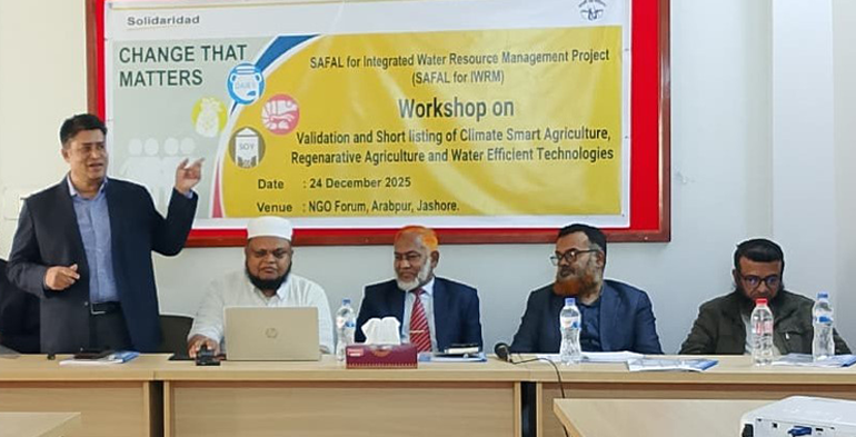 এগ্রিলাইফ২৪ ডটকম: এনজিও ফোরাম যশোরের কনফারেন্স রুমে আজ বুধবার ২৪ ডিসেম্বর সলিডারিডাড নেট ওয়র্ক এশিয়া ও জাগরণী চক্র ফাউন্ডেশন এর উদ্যোগে Validation and short listing of the Climate-smart Agriculture, Regenerative Agriculture and water-efficient technology শীর্ষক কর্মশালা অনুষ্ঠিত হয়।