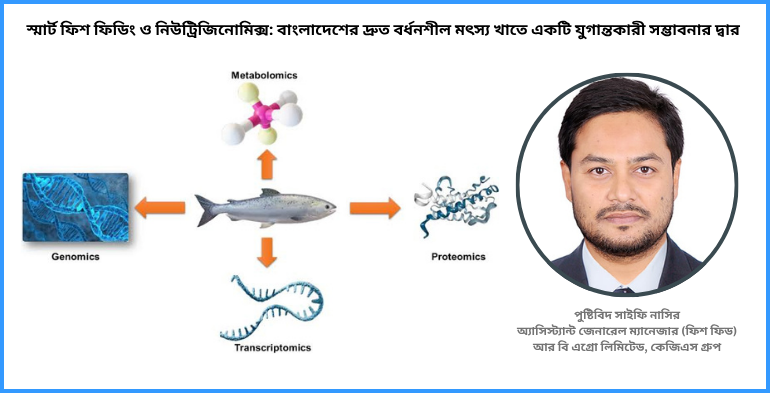 প্রচলিত ফিড ফর্মুলেশন যেখানে সাধারণ পুষ্টিগত চাহিদার উপর ভিত্তি করে তৈরি হয়, সেখানে নিউট্রিজিনোমিক্স নির্দিষ্ট প্রজাতির জিনগত বৈশিষ্ট্য অনুযায়ী কাস্টমাইজড ফিড ডিজাইন করার সুযোগ সৃষ্টি করে। এর ফলে মাছের পুষ্টি গ্রহণের দক্ষতা বৃদ্ধি পায়, ফিড কনভার্সন রেশিও (FCR) উন্নত হয় এবং রোগের ঝুঁকি কমে যায়। বিশেষ করে ট্রান্সক্রিপ্টোমিক্স, প্রোটিওমিক্স এবং মেটাবোলোমিক্সের মতো ওমিক্স প্রযুক্তি ব্যবহার করে মাছের শরীরে পুষ্টির প্রভাব গভীরভাবে বিশ্লেষণ করা সম্ভব হচ্ছে, যা আধুনিক অ্যাকোয়াকালচারে এক নতুন দিগন্তের সূচনা করেছে বলে জানান পুষ্টিবিদ সাইফি নাসির।