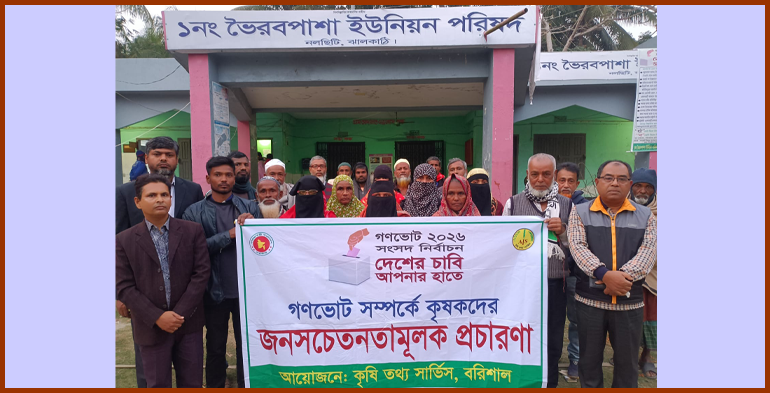 এগ্রিলাইফ২৪ ডটকম: গণভোট নিয়ে কৃষি বিভাগের সাথে কৃষকদের সচেতনতামূলক সভা গতকাল সন্ধ্যায় ঝালকাঠিতে অনুষ্ঠিত হয়েছে। নলছিটি উপজেলার ভৈরব পাশা ইউনিয়ন পরিষদে কৃষি তথ্য সার্ভিস ও কৃষি সম্প্রসারণ অধিদপ্তরের যৌথ উদ্যোগে এই সভার আয়োজন করা হয়। এতে প্রধান অতিথি ছিলেন আঞ্চলিক কৃষি তথ্য অফিসার শেখ হাবিবুর রহমান।