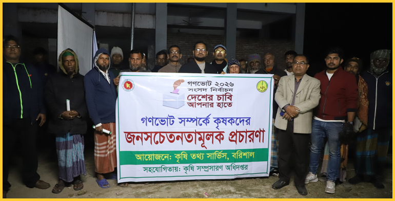 নাহিদ বিন রফিক, বরিশাল (বরিশাল): গণভোট নিয়ে কৃষকদের সাথে কৃষি বিভাগের সচেতনতামূলক সভা গতকাল পটুয়াখালীতে অনুষ্ঠিত হয়েছে। সদর উপজেলার বদরপুরে কৃষি তথ্য সার্ভিস ও কৃষি সম্প্রসারণ অধিদপ্তরের যৌথ উদ্যোগে এই সভার আয়োজন করা হয়। এতে প্রধান অতিথি ছিলেন পটুয়াখালী সদরের উপজেলা কৃষি অফিসার মো. নাজমুল ইসলাম মজুমদার।