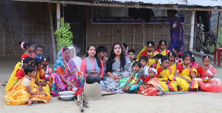 মো: এমদাদুল হক: গতকাল ১৬ নভেম্বর রোজ রবিবার একাধিকবার জাতীয় কৃষি পদক প্রাপ্ত রাজশাহী শহরের মহিষবাথান এলাকার কৃষক মনিরুজ্জামান মনিরের উদ্যোগে চৈতন্যপুর গ্রামের নবান্ন উৎসবের আয়োজন করা হয়। ক্ষুদ্র জাতিগোষ্ঠী চৈতন্যপুর গ্রামের আবহমান এই ঐতিহ্য ধরে রাখতে গ্রামে আয়োজন করেছেন নবান্ন উৎসবের। পয়লা অগ্রহায়ণে গ্রামের সবাইকে নিয়ে তিনি আয়োজন করেন বাঙালি ঐতিহ্যের এই উৎসবের।