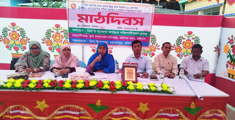 নাহিদ বিন রফিক (বরিশাল): বিনাধান-২০’র মাঠ দিবস ১৭ নভেম্বর বরিশাল সদরে অনুষ্ঠিত হয়েছে। এ উপলক্ষ্যে উপজেলার হিজলতলায় বাংলাদেশ পরমাণু কৃষি গবেষণা ইনস্টিটিউটে (বিনা) উদ্যোগে এক আলোচনা সভার আয়োজন করা হয়। অনুষ্ঠানে প্রধান অতিথি ছিলেন কৃষি সম্প্রসারণ অধিদপ্তর, বরিশালের উপপরিচালক মোসাম্মৎ মরিয়ম। বিশেষ অতিথি ছিলেন বরিশাল সদরের উপজেলা কৃষি অফিসার উত্তম ভৌমিক।