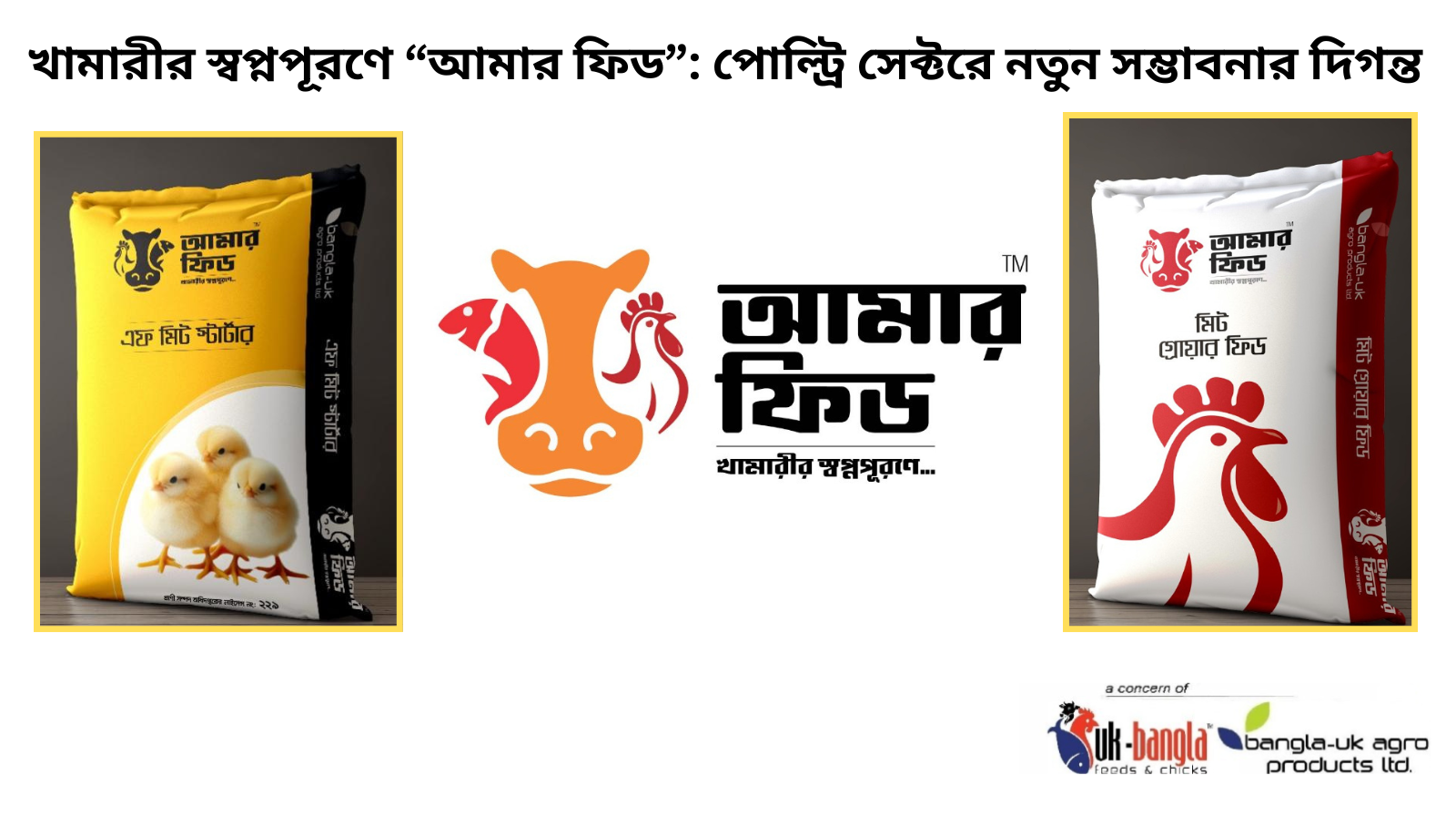 এগ্রিলাইফ২৪ ডটকম: বাংলাদেশের পোল্ট্রি শিল্পে খামারীদের লাভজনক উৎপাদন ও উন্নত মানের মাংস নিশ্চিত করতে বাজারে এসেছে নতুন ব্র্যান্ড “আমার ফিড”। Bangla-UK Agro Products Ltd.-এর এই ব্র্যান্ডটির AF-মিট স্টার্টার ইতোমধ্যেই খামারীদের মাঝে আশার সঞ্চার করেছে।