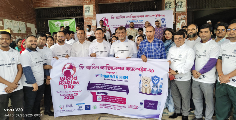 এগ্রিলাইফ২৪ ডটকম: ওয়ার্ল্ড র্যাবিস ডে কে সামনে রেখে আজ ২৫ সেপ্টেম্বর ২০২৫ সকাল ৯:৩০ টায় শেরেবাংলা কৃষি বিশ্ববিদ্যালয়ের উপাচার্য অধ্যাপক ড. মোঃ আব্দুল লতিফের নেতৃত্বে এম. মহবুবউজ্জামান একাডেমিক ভবনের সম্মুখে বিশ্ব র্যাবিস দিবস উপলক্ষে “ফ্রি র্যাবিস ভ্যাকসিনেশন ক্যাম্পেইন–২০২৫”-এর শুভ উদ্বোধন করা হয়।
