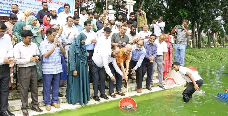 উল্লেখ্য, সারা জেলায় মোট ৯০০ কেজি পোনা মাছ অবমুক্ত করা হয়, যার মধ্যে শুধুমাত্র বাকৃবিতেই অবমুক্ত করা হয়েছে ৩৫০ কেজি পোনা।