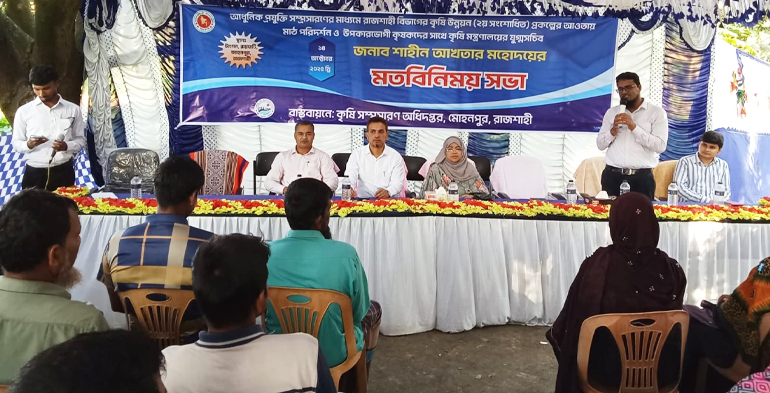 অনুষ্ঠানের শুরুতে স্বাগত বক্তব্য রাখেন মোহনপুর উপজেলা কৃষি অফিসার কৃষিবিদ কামরুল ইসলাম। মতবিনিময় সভা শুরুর আগেই অতিথিদ্বয় প্রকল্পের আওতায় বাস্তবায়িত নিরাপদ উচ্চমূল্য ফসল পটল, পান, গ্রিণ এনার্জি ব্যাবহার করে সেচ প্রদান, বিভিন্ন কৃষি যন্ত্রপাতি পরিদর্শন করেন।