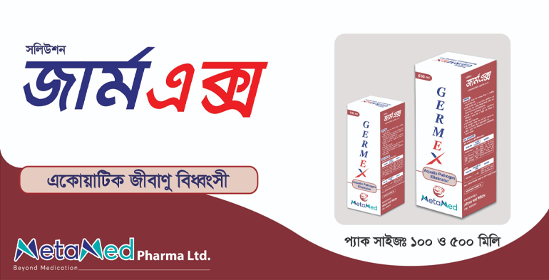 এগ্রিলাইফ২৪ ডটকম: মাছ ও চিংড়ি চাষে রোগ প্রতিরোধ ও সুস্থ পরিবেশ গড়ে তুলতে বাজারে এসেছে আধুনিক অ্যাকোয়াটিক জীবাণুনাশক ‘জার্ম এক্স’। এটি মেটামেড ফার্মা লিমিটেড বাজারজাত করছে।