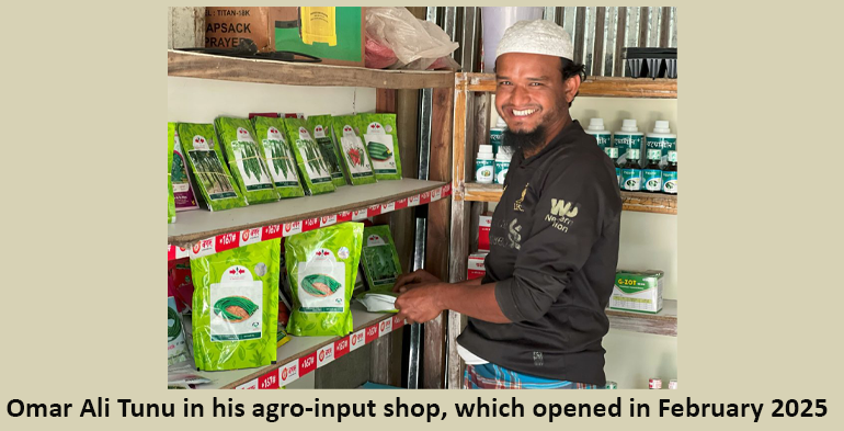 While guiding these farmers, Omar saw another business opportunity. He started working to identify quality agricultural inputs for his very own retail shop, which he opened in February 2025.