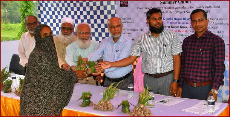 আজ বৃহস্পতিবার (০২ এপ্রিল) সকাল ১০টায় বিশ্ববিদ্যালয়ের হর্টিকালচার ফার্মের অ্যালিয়াম ফিল্ডে আয়োজিত এ কর্মসূচিতে বিশ্ববিদ্যালয়ের আশেপাশের এলাকার ৩০ জন কৃষককে ২০০টি করে পেঁয়াজের চারা বিনামূল্যে বিতরণ করা হয়। এসময় কৃষকদের আধুনিক প্রযুক্তিনির্ভর পেঁয়াজ উৎপাদন বিষয়ে প্রশিক্ষণ দেওয়া হয়। "উন্নত কন্দের গুণমান, বীজ উৎপাদন ও সংরক্ষণক্ষমতার জন্য পেঁয়াজের জার্মপ্লাজম বাছাই" শীর্ষক প্রকল্পটিতে অর্থায়ন করছে কেজিএফ। প্রকল্পটির প্রধান গবেষক হিসেবে রয়েছেন বাকৃবির উদ্যানতত্ত্ব বিভাগের অধ্যাপক অধ্যাপক ড. মো. হারুন অর রশিদ এবং কো-প্রধান গবেষক হিসেবে রয়েছেন রাজশাহীর বরেন্দ্র স্টেশনের বাংলাদেশ কৃষি গবেষণা ইনস্টিটিউটের সিনিয়র সাইন্টিফিক অফিসার ও ইনচার্জ, ওএফআরডি ড. মোঃ হাছান ওআলিউল্লাহ।