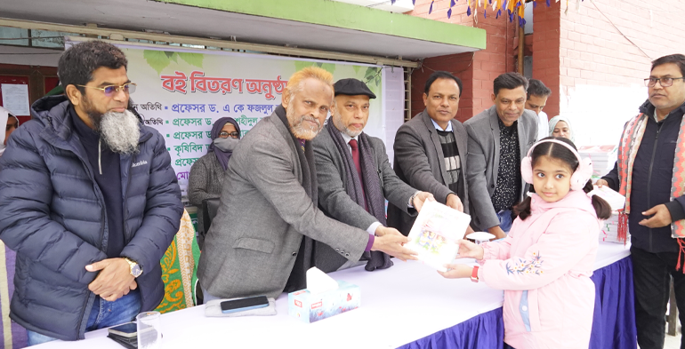 বাকৃবি প্রতিনিধিঃ নতুন বছরের প্রথম দিনেই উৎসবমুখর পরিবেশে ময়মনসিংহের বাংলাদেশ কৃষি বিশ্ববিদ্যালয় (বাকৃবি) হাই স্কুলে 'বই বিতরণ অনুষ্ঠান-২০২৬' অনুষ্ঠিত হয়েছে। আজ বৃহস্পতিবার (১ জানুয়ারি) সকাল ১০টায় স্কুল মাঠ প্রাঙ্গণে শিক্ষার্থীদের মাঝে নতুন বই বিতরণ করা হয়। অনুষ্ঠানে প্রধান অতিথি উপাচার্য অধ্যাপক ড. এ কে ফজলুল হক ভূঁইয়া শিক্ষার্থীদের মাঝে নতুন বই তুলে দেন এবং এর মাধ্যমে নতুন শিক্ষাবর্ষের কার্যক্রম আনুষ্ঠানিকভাবে শুরু হয়।
