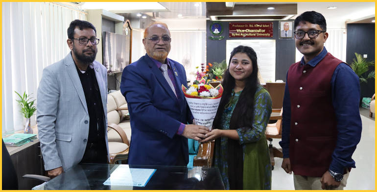এগ্রিলাইফ২৪ ডটকম:সিলেট কৃষি বিশ্ববিদ্যালয়ের (সিকৃবি) ভাইস-চ্যান্সেলর প্রফেসর ড. মোঃ আলিমুল ইসলাম বলেছেন, কৃষি শিক্ষা ও গবেষণায় নেতৃত্ব দিবে সিকৃবি’র শিক্ষার্থী, শিক্ষক ও গবেষকবৃন্দ। তিনি বলেন, সিকৃবিকে সেন্টার অব এক্সিলেন্স হিসেবে গড়ে তুলতে হলে সরকারী-বেসরকারী পর্যায়ে সহযোগিতা প্রয়োজন। ১৮ জানুয়ারি (রবিবার) জাতীয় বিজ্ঞান ও প্রযুক্তি (এনএসটি) ফেলোশিপে খাদ্য ও কৃষি বিজ্ঞান গ্রুপে সারা দেশের মধ্যে প্রথম স্থান অধিকারী সিকৃবি’র মেধাবী শিক্ষার্থী রিদিমা আক্তার রিয়া ভাইস-চ্যান্সেলর প্রফেসর ড. মোঃ আলিমুল ইসলাম এর সাথে সৌজন্য সাক্ষাত করেন।