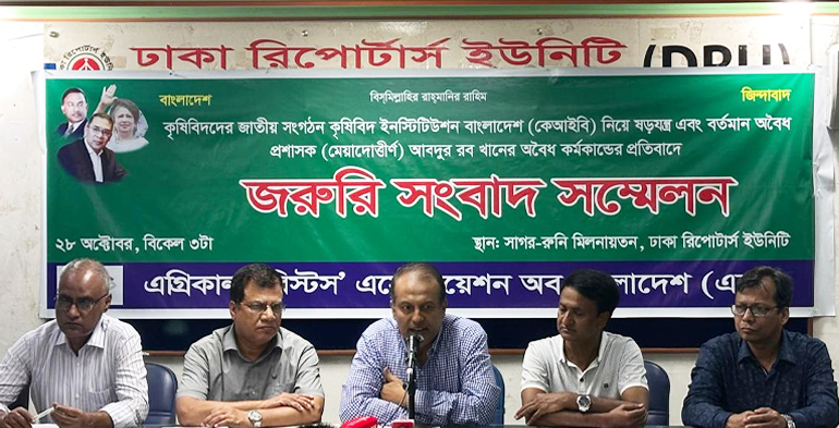 কৃষিবিদ ডেস্ক: কৃষিবিদ ইনস্টিটিউশন অব বাংলাদেশ (কেআইবি)-তে অবিলম্বে একজন নিরপেক্ষ ও জ্যেষ্ঠ কৃষিবিদকে প্রশাসক নিয়োগ এবং বর্তমান প্রশাসক আবদুর রব খানের নিয়োগ ও অনিয়মের বিচার দাবি করেছে এগ্রিকালচারিস্ট অ্যাসোসিয়েশন অব বাংলাদেশ (এ্যাব)। আজ মঙ্গলবার (২৮ অক্টোবর) ঢাকা রিপোর্টার্স ইউনিটিতে আয়োজিত এক সংবাদ সম্মেলনে এই দাবি জানানো হয়।