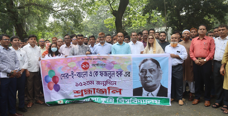 ক্যাম্পাস ডেস্ক: আজ রবিবার ২৬ আগস্ট শেরেবাংলা কৃষি বিশ্ববিদ্যালয়ের উপাচার্য অধ্যাপক ড. মোঃ আব্দুল লতিফ এর নের্তৃত্বে কৃষক শ্রমিক পার্টির অন্যতম প্রতিষ্ঠাতা ও বাঙালী জাতির শৃঙ্খল মুক্তির দিসারী,অবিভক্ত বাংলার মুখ্যমন্ত্রী, জাতীয় নেতা শের-ই-বাংলা এ. কে. ফজলুল হকের ১৫২ তম জন্ম দিনে শ্রদ্ধাঞ্জলী অর্পন করা হয়।