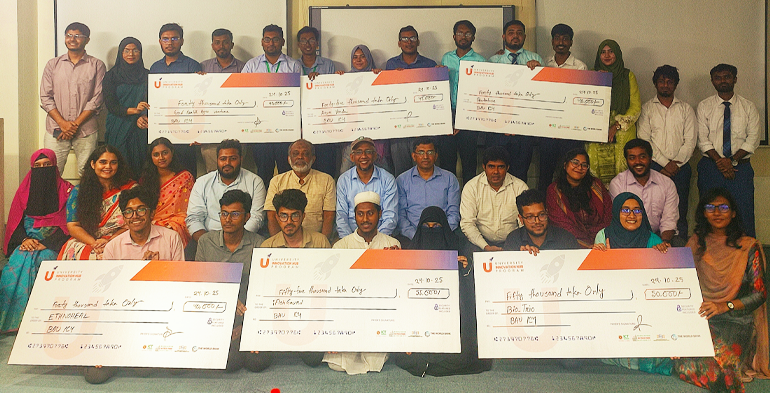 বাকৃবি প্রতিনিধি: বাংলাদেশ কৃষি বিশ্ববিদ্যালয়ে (বাকৃবি) তরুণ উদ্যোক্তাদের স্বপ্নকে বাস্তবে রূপ দিতে অনুষ্ঠিত হয়েছে ইউনিভার্সিটি ইনোভেশন হাব প্রোগ্রামের (ইউআইএইচপি) ফাইনাল পিচ প্রেজেন্টেশন ডে। প্রায় তিন মাসব্যাপী মেন্টরশিপ ও প্রোটোটাইপ উন্নয়ন কার্যক্রম শেষে অংশগ্রহণকারী দলগুলো তাদের উদ্ভাবনী প্রজেক্ট উপস্থাপন করে। প্রতিযোগিতায় অংশগ্রহণকারী দলগুলোর মধ্যে মোট পাঁচ লক্ষ পঞ্চাশ হাজার টাকা, যেখানে কোহর্ট ৩ এর বিজয়ী দলগুলোকে মোট দুই লক্ষ আশি হাজার টাকা এবং কোহর্ট ৪ এর বিজয়ী দলগুলোকে মোট দুই লক্ষ সত্তর হাজার টাকা প্রদান করা হয়।