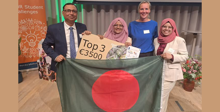 বাকৃবি প্রতিনিধি:টেকসই বৈশ্বিক খাদ্য ব্যবস্থা উন্নয়নের লক্ষ্যে নেদারল্যান্ডসে অনুষ্ঠিত ফুড সিস্টেমস ইনোভেশন চ্যালেঞ্জ ২০২৫-এর দ্বিতীয় আসরে বাংলাদেশ কৃষি বিশ্ববিদ্যালয়ের (বাকৃবি) দুটি দল সাফল্য অর্জন করেছে। প্রতিযোগিতায় অংশগ্রহণকারী দল দুটি হলো ‘অ্যাগ্রো ফেম সেপ্টেট’ ও ‘অ্যাকোয়াফোর’।