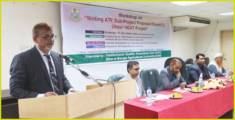 এগ্রিলাইফ২৪ ডটকম:শেরেবাংলা কৃষি বিশ্ববিদ্যালয়ের (শেকৃবি)- আইকিউএসি-এর উদ্যোগে “Writing ATF Sub-Project Proposal (Round-2) under HEAT Project” শীর্ষক এক কর্মশালা আজ ১৬ ফেব্রুয়ারি ২০২৬, সোমবার সকাল ১০:০০টায় বিশ্ববিদ্যালয়ের প্রশাসনিক ভবনের চতুর্থ তলার কনফারেন্স কক্ষে অনুষ্ঠিত হয়।
