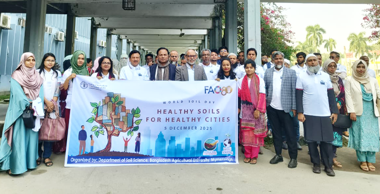 বাকৃবি প্রতিনিধি: 'সুস্থ শহরের জন্য সুস্থ মাটি' এই প্রতিপাদ্যকে সামনে রেখে বাংলাদেশ কৃষি বিশ্ববিদ্যালয়ে (বাকৃবি) উদযাপিত হলো বিশ্ব মৃত্তিকা দিবস ২০২৫।