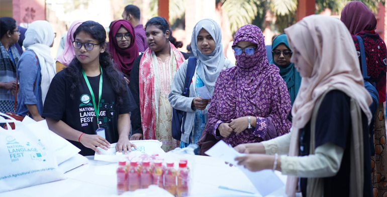 বাকৃবি প্রতিনিধি: বাংলাদেশ কৃষি বিশ্ববিদ্যালয়ে (বাকৃবি) তৃতীয়বারের মতো জাতীয় ভাষা উৎসব-২০২৫ শুরু হয়েছে। দেশের ২৫টি বিশ্ববিদ্যালয়ের শিক্ষার্থীদের অংশগ্রহণে দুই দিনব্যাপী এই উৎসবের আয়োজন করেছে বিশ্ববিদ্যালয়ের ভাষা বিষয়ক সংগঠন বাকৃবি ল্যাঙ্গুয়েজ ক্লাব। উৎসবের প্রথম পর্ব শুক্রবার (৫ ডিসেম্বর) বিভিন্ন ভাষায় দক্ষতা যাচাই প্রতিযোগিতা ও বর্ণকুঞ্জ উদ্বোধনের মধ্য দিয়ে শুরু হয়। দ্বিতীয় পর্বের আলোচনা অনুষ্ঠান ও প্রতিযোগিতার বিজয়ীদের মাঝে পুরস্কার বিতরণী আগামী ৬ ডিসেম্বর অনুষ্ঠিত হবে।
