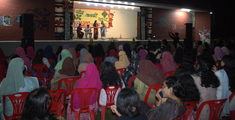 বাকৃবি প্রতিনিধিঃ বাংলাদেশ কৃষি বিশ্ববিদ্যালয়ে (বাকৃবি) নবীন শিক্ষার্থীদের বরণ করে নিতে আয়োজন করা হয়েছে “নবীন আগমনী উৎসব”। ২০২৪-২৫ শিক্ষাবর্ষে ভর্তিকৃত শিক্ষার্থীদের উদ্দেশ্যে বিশ্ববিদ্যালয়ের সাংস্কৃতিক সংগঠন 'চারণ সাংস্কৃতিক কেন্দ্র' এ আয়োজন করে। বৃহস্পতিবার (২০ নভেম্বর) বিকাল ৪ টায় বিশ্ববিদ্যালয়ের জয়নুল আবেদীন মিলনায়তনের মুক্তমঞ্চে উৎসব মুখর পরিবেশে এটি অনুষ্ঠিত হয়।
