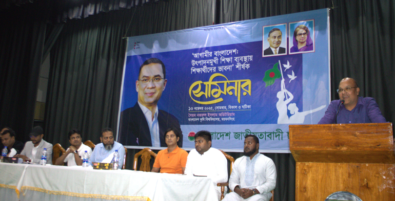বাকৃবি প্রতিনিধি:বাংলাদেশ কৃষি বিশ্ববিদ্যালয়ে (বাকৃবি) ‘আগামীর বাংলাদেশ: উৎপাদনমুখী শিক্ষা ব্যবস্থায় শিক্ষার্থীদের ভাবনা’ শীর্ষক সেমিনার অনুষ্ঠিত হয়েছে। আজ সোমবার (১০ নভেম্বর) বিশ্ববিদ্যালয়ের সৈয়দ নজরুল ইসলাম সম্মেলন কক্ষে ওই সেমিনারের আয়োজন করে বাংলাদেশ জাতীয়তাবাদী ছাত্রদল, বাকৃবি শাখা।