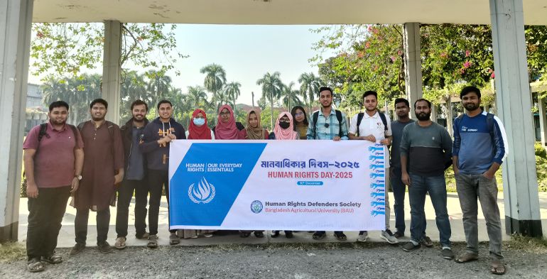 বাকৃবি প্রতিনিধি:আন্তর্জাতিক মানবাধিকার দিবস-২০২৫ উপলক্ষে বাংলাদেশ কৃষি বিশ্ববিদ্যালয় (বাকৃবি) ক্যাম্পাসে মানববন্ধন কর্মসূচি আয়োজিত হয়েছে। এ বছরের 'মানবাধিকার: আমাদের প্রতিদিনের অপরিহার্য বিষয়' প্রতিপাদ্যকে সামনে রেখে বিশ্ববিদ্যালয়ের শিক্ষার্থীদের সংগঠন হিউম্যান রাইটস ডিফেন্ডারস সোসাইটি (এইচাআরডিএস), বাকৃবি ইউনিট ওই কর্মসূচির আয়োজন করে।