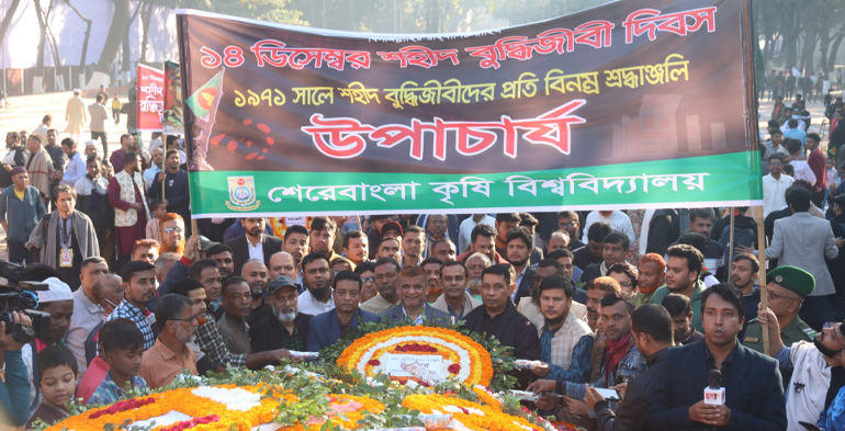 এগ্রিলাইফ২৪ ডটকম: শেরেবাংলা কৃষি বিশ্ববিদ্যালয়ে (শেকৃবি) যথাযোগ্য মর্যাদায় শহীদ বুদ্ধিজীবী দিবস পালিত হয়েছে। আজ রবিবার ১৪ ডিসেম্বর সকাল সাড়ে ৭টায় জাতীয় পতাকা উত্তোলনের মধ্যে দিয়ে দিবসটির স‚চনা করেন শেকৃবি উপাচার্য অধ্যাপক ড. মোঃ আব্দুল লতিফ। এরপর ৭ টা ৩৫ মিনিটে শেকৃবি’র কেন্দ্রীয় জামে মসজিদের সিনিয়র পেশ ইমাম হাফেজ মাওলানা মুফতি মোহাম্মদ আব্দুল আউয়াল শহীদ বুদ্ধিজীবীদের আত্মার মাগফেরাত কামনা করে মোনাজাত পরিচালনা করেন।