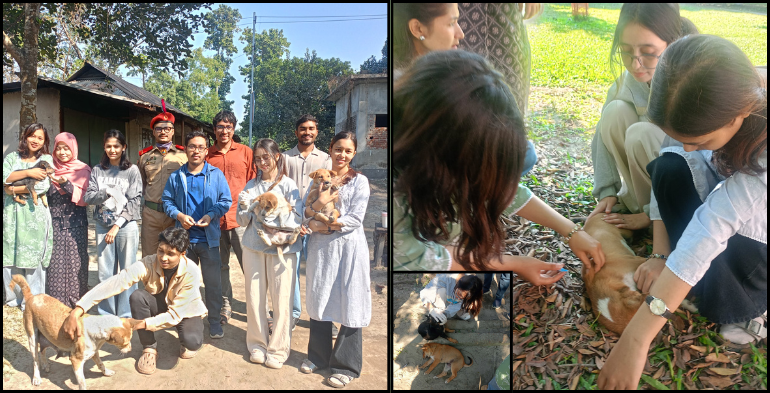 আজ মঙ্গলবার (১৬ ডিসেম্বর) সকাল থেকে শুরু হওয়া এই কর্মসূচিতে সংগঠনটির সদস্যরা সক্রিয়ভাবে অংশ নেন। দিনব্যাপী পরিচালিত কার্যক্রমে ক্যাম্পাস ও আশপাশের এলাকার ২৫টিরও বেশি পথপ্রাণীকে কৃমিনাশক ট্যাবলেট ও ইনজেকশনের মাধ্যমে চিকিৎসা দেওয়া হয়।