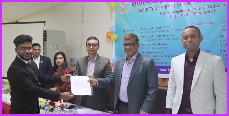 অনুষ্ঠানে প্রধান অতিথি হিসেবে উপস্থিত ছিলেন শেরেবাংলা কৃষি বিশ্ববিদ্যালয়ের উপাচার্য অধ্যাপক ড. মোঃ আব্দুল লতিফ। তিনি তাঁর বক্তব্যে বলেন, “তোমরা দীর্ঘ পাঁচ বছর পরিশ্রম করে অত্যন্ত সফলতার সঙ্গে এই ডিগ্রি শেষ করতে যাচ্ছ এর জন্য তোমাদের সাধুবাদ জানাই। আন্তর্জাতিক ও জাতীয় পর্যায়ের এ ধরনের ইন্টার্নশিপ কার্যক্রম শিক্ষার্থীদের বাস্তবমুখী প্রশিক্ষণ, ব্যবহারিক জ্ঞান এবং পেশাগত দক্ষতা বৃদ্ধিতে গুরুত্বপূর্ণ ভ‚মিকা রাখে। এর মাধ্যমে শিক্ষার্থীরা ভবিষ্যৎ কর্মজীবনের জন্য প্রয়োজনীয় বাস্তব অভিজ্ঞতা অর্জন করতে সক্ষম হয়।”