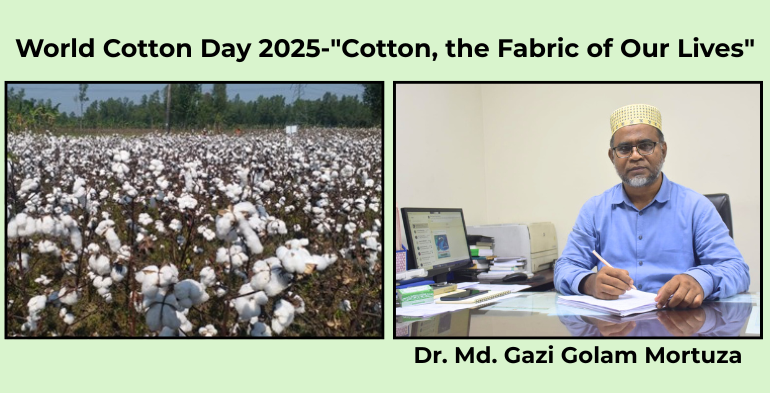 Dr. Md. Gazi Golam Mortuza:Cotton touches us every day, it is a source of livelihoods for millions of smallholders and labourers, including women and their families, and contributes significantly to the economies of many developing countries like Bangladesh. Basic needs of human beings are food, clothing, shelter, medical care and education. From the point of view of civilization, clothing is our first basic need. The basic and main ingredient of this textile industry is cotton. Cotton cloth is one of the most common fabrics in our daily life.