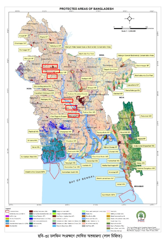 ১) ঢাংমারী বন্যপ্রাণী অভয়ারণ্যঃ ৬.৩ মাইল দীর্ঘ নদীর এই অংশটি ঘাঘড়াামারী টহল ফাঁড়ি থেকে শুরু হয়ে করমজল ফাঁড়ির ২ কিলোমিটার দক্ষিণ পর্যন্ত বিস্তৃত।