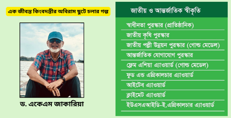 যাকে নিয়ে এই গল্প তিনি পল্লী উন্নয়ন একাডেমী, বগুড়া সাবেক পরিচালক, বগুড়া জেলার শাজাহানপুর উপজেলার কৃষি সন্তান তথা বাংলাদেশের গর্ব, জাতীয় ও আন্তর্জাতিক খ্যাতিসম্পন্ন কৃষি বিজ্ঞানী- এ সময়ের এক জীবন্ত কিংবদন্তী ড. একেএম জাকারিয়া।