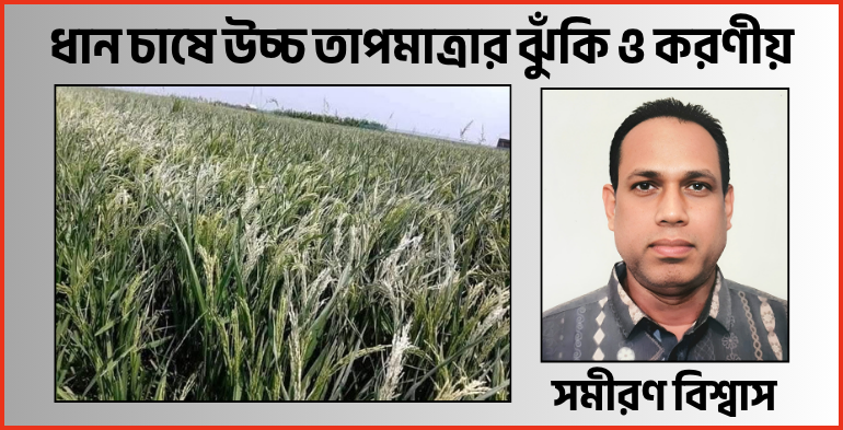 সমীরণ বিশ্বাস:ধান চাষে উচ্চ তাপমাত্রার ঝুঁকি ও করণীয়: কৃষকের জন্য জরুরি সতর্কবার্তা। বাংলাদেশ একটি কৃষিনির্ভর দেশ, যেখানে খাদ্য নিরাপত্তার মূল ভিত্তি হলো ধান। দেশের অধিকাংশ কৃষক তাদের জীবিকা নির্বাহের জন্য ধান চাষের ওপর নির্ভরশীল। কিন্তু সাম্প্রতিক বছরগুলোতে জলবায়ু পরিবর্তনের প্রভাবে তাপমাত্রা অস্বাভাবিকভাবে বৃদ্ধি পাচ্ছে, যা ধান উৎপাদনে মারাত্মক প্রভাব ফেলছে। বিশেষ করে বোরো মৌসুমে উচ্চ তাপমাত্রা ধানের বৃদ্ধি, ফুল ফোটা, পরাগায়ন এবং দানা গঠনের মতো গুরুত্বপূর্ণ পর্যায়গুলোকে ব্যাহত করছে। ফলে ধান চিটা হওয়া, ঝলসে যাওয়া এবং উৎপাদন কমে যাওয়ার ঝুঁকি বাড়ছে।