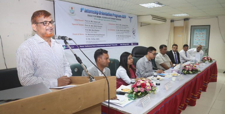 এগ্রিলাইফ২৪ ডটকম: শেরেবাংলা কৃষি বিশ্ববিদ্যালয়ের (শেকৃবি) ফ্যাকাল্টি অব অ্যানিমেল সায়েন্স অ্যান্ড ভেটেরিনারি মেডিসিনে নবম ইন্টার্নশিপ ওরিয়েন্টেশন প্রোগ্রাম-২০২৪ অনুষ্ঠিত হয়েছে। অনুষ্ঠানের প্রধান অতিথি হিসেবে উপস্থিত ছিলেন বিশ্ববিদ্যালয়ের উপাচার্য অধ্যাপক ড. মো. আব্দুল লতিফ। তিনি বলেন, “প্রাণি চিকিৎসা এক মহান পেশা। এ পেশার মাধ্যমে গরিব কৃষকদের দোয়া পাওয়া যায়। আগামীতে প্রাণিসম্পদ অধিদপ্তরের নেতৃত্ব দিবে তোমরা। ভবিষ্যতে বিশ্ববিদ্যালয়গুলোতে কম্বাইন্ড ডিগ্রি চালু হবে।”