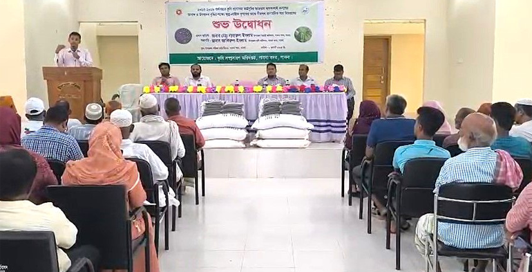 মোঃ গোলাম আরিফ: ২৮ আগস্ট ২০২৫ পাবনা সদর উপজেলায় ২০২৫-২৬ অর্থবছরে কৃষি প্রণোদনা কর্মসূচির আওতায় কৃষকদের মাঝে বিনামূল্যে বীজ ও রাসায়নিক সার বিতরণের শুভ উদ্বোধন অনুষ্ঠিত হয়। খরিপ-২ মৌসুমে মাষকালাই ফসলের আবাদ ও উৎপাদন বৃদ্ধির লক্ষ্যে এ কার্যক্রমের উদ্বোধন করেন মোঃ নাহারুল ইসলাম, উপজেলা নির্বাহী অফিসার, পাবনা সদর, পাবনা।
