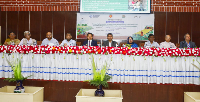 Agrilife24.com:The Food and Agriculture Organization of the United Nations (FAO) in collaboration with the Sara Bangla Krishak Society (SBKS) organized an inception workshop titled “Integrating Sustainable Agricultural Mechanization (SAM) into Farmer Field School (FFS) Programming and Advocating for Private Sector Engagement” on 24 April 2025 at BARC Auditorium, Farmgate, Dhaka.