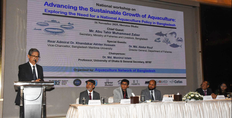 Staff Correspondent: The National Workshop on “Advancing the Sustainable Growth of Aquaculture: Exploring the Need for a National Aquaculture Policy in Bangladesh” was held on 16 November 2025 at Sheraton Dhaka, organized by the Aquaculture Network of Bangladesh (ANB) with support from CEFAS, Evolved Research Consulting, and MacAlister Elliot & Partners, UK.
